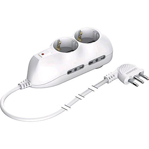 BTicino 3695DB Multipresa Compatta Slot6 con Interruttore Luminoso Automatico di Sicurezza, 4 Prese Bipasso 10/16A e 2 P30, Spina 10A, 2200 W, 250 V, Bianco