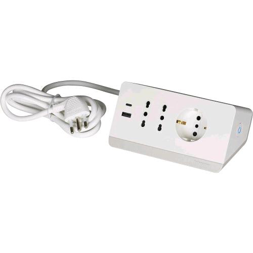 MASSIMA EFFICIENZA: Ciabatta multipresa elettrica Bticino S3711DBU, bianca, robusta e funzionale, dotata di 2 porte USB tipo A e C (3A), 2 prese bipasso (10/16A) e 1 presa schuko (10/16A), per ricaricare simultaneamente più dispositivi ad alto consumo energetico - potenza massima erogabile 2300 W DESIGN ROBUSTO E FUNZIONALE: Multipresa da scrivania moderna e innovativa, studiata per ottimizzare lo spazio sulla scrivania di casa e dell'ufficio SICUREZZA AL PRIMO POSTO: Protezione da sovratensioni, sovracorrente, surriscaldamenti, cortocircuiti. In caso di sovraccarico, l'interruttore di sicurezza SAFE interviene automaticamente interrompendo l'alimentazione (dispositivo riarmabile dopo qualche secondo) PROTEZIONE PER BAMBINI: Pensata anche per la sicurezza familiare, la multipresa è dotata di fori con protezione per bambini che previene l'inserimento accidentale di oggetti estranei nelle prese elettiche MATERIALI DI ALTA QUALITA': Realizzata con materiali resistenti e di qualità per garantire la massima sicurezza in in ogni condizione e una maggiore durata nel tempo FACILE DA USARE: Interruttore on/off e indicatore LED per un comodo controllo dell'alimentazione VERSATILE E FLESSIBILE: Cavo antistrappo lungo 2 metri con spina grande italiana 16A per raggiungere facilmente tutte le prese necessarie.