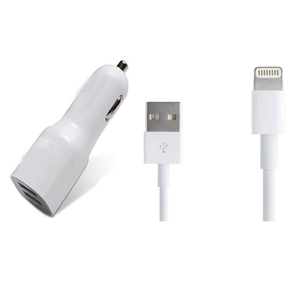 Caricabatterie Lightning per auto con cavo di ricarica e sincronizzazione 2xUSB 1m