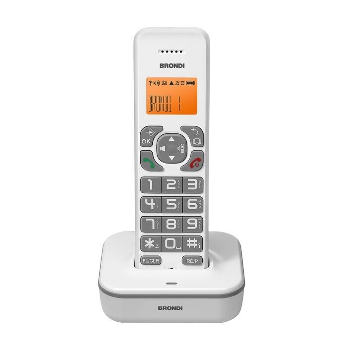 Telefono cordless Brondi bravo gold eco dect con display retroilluminato e con tasto boost per un ascolto amplificato, 3 memorie dirette m1 - m2 - m3 e funzione vivavoce.