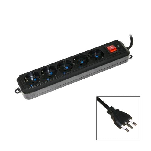 MULTIPRESA 5 INGRESSI SCHUKO/ITALIANO - INTERRUTTORE ON/OFF - PROTEZIONE SOVRACCARICHI - NERO