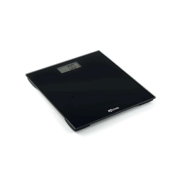Bilancia pesapersone BiBi - Pedana in vetro temperato di 6 mm - Capacità massima: 180 kg/396 lb - Accensione automatica salendo sulla pedana - Autospegnimento - Colore Nero