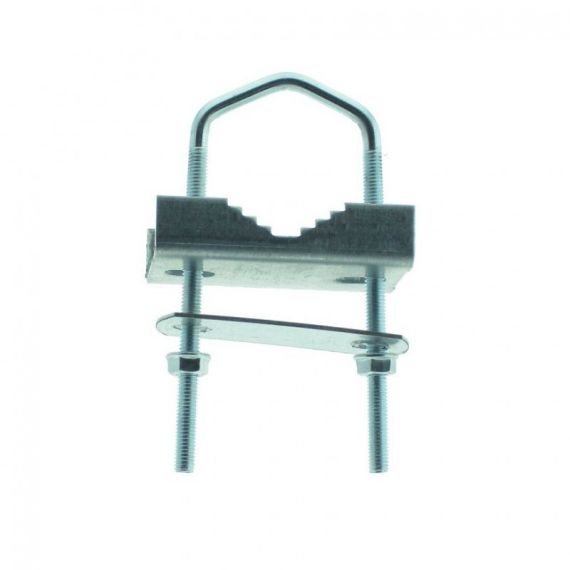 Zanca per il fissaggio a ringhiere di pali con diametro da 25 a 42 mm. Dado M6, filettatura cm 9, spessore pistre 2 mm