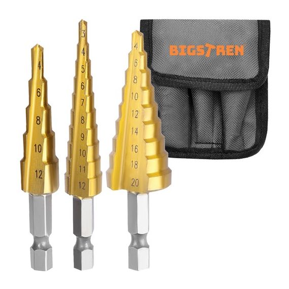 NUMERAZIONE LEGGIBILE – le frese sono a gradini, ognuna di esse ha una numerazione. È perfettamente leggibile, grazie al quale possiamo facilmente praticare un foro della larghezza desiderata. Il set comprende tre punte per realizzare fori di diverse dimensioni.